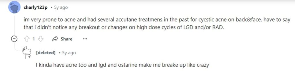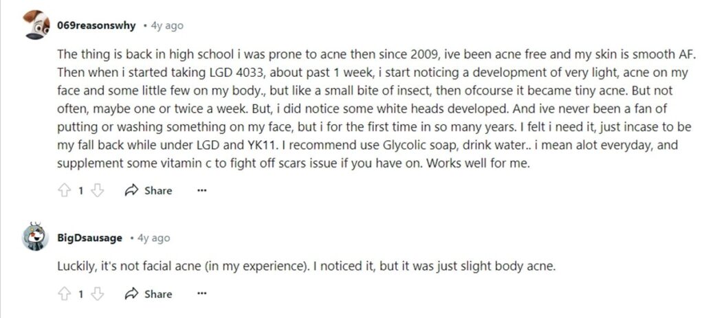 Additionally, anecdotal evidence and user reports frequently mention acne as a common side effect of SARM use alongside other issues like shrinking balls. But, some users experience more severe outbreaks than others.